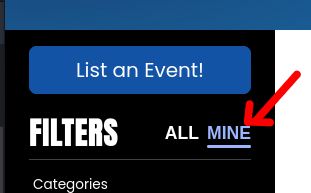Now, your event will be created! You will be able to see it under the MINE tab on the calendar page