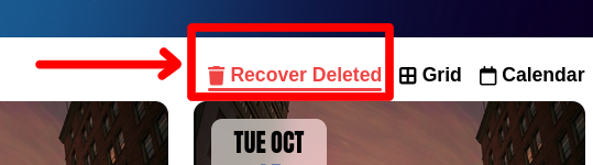 Accidentally deleted an event? No worries! You can always recover deleted events in the Recover Deleted tab – just note these events will be PERMANENTLY DESTROYED 30 days after they were deleted, so if you want to keep them around remember to do that quickly!