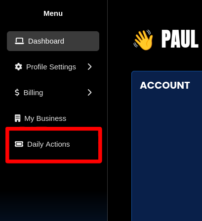 - The Account Dashboard menu is used to navigate the Account Dashboard