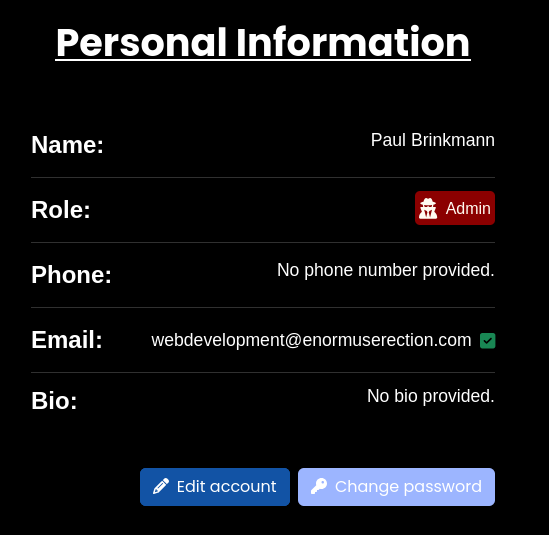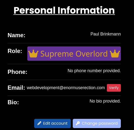 You can also use the Edit account or Change password buttons to do either of those respective activities. You can also Verify your email here – the Green ✔️ next to mine is showing that mine is already verified! Here’s what it’ll look like if yours isn’t: