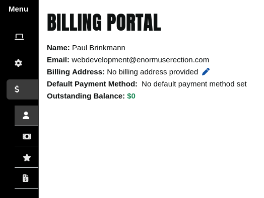 Here, you can see basic information about yourself stored in our payment processor, including: